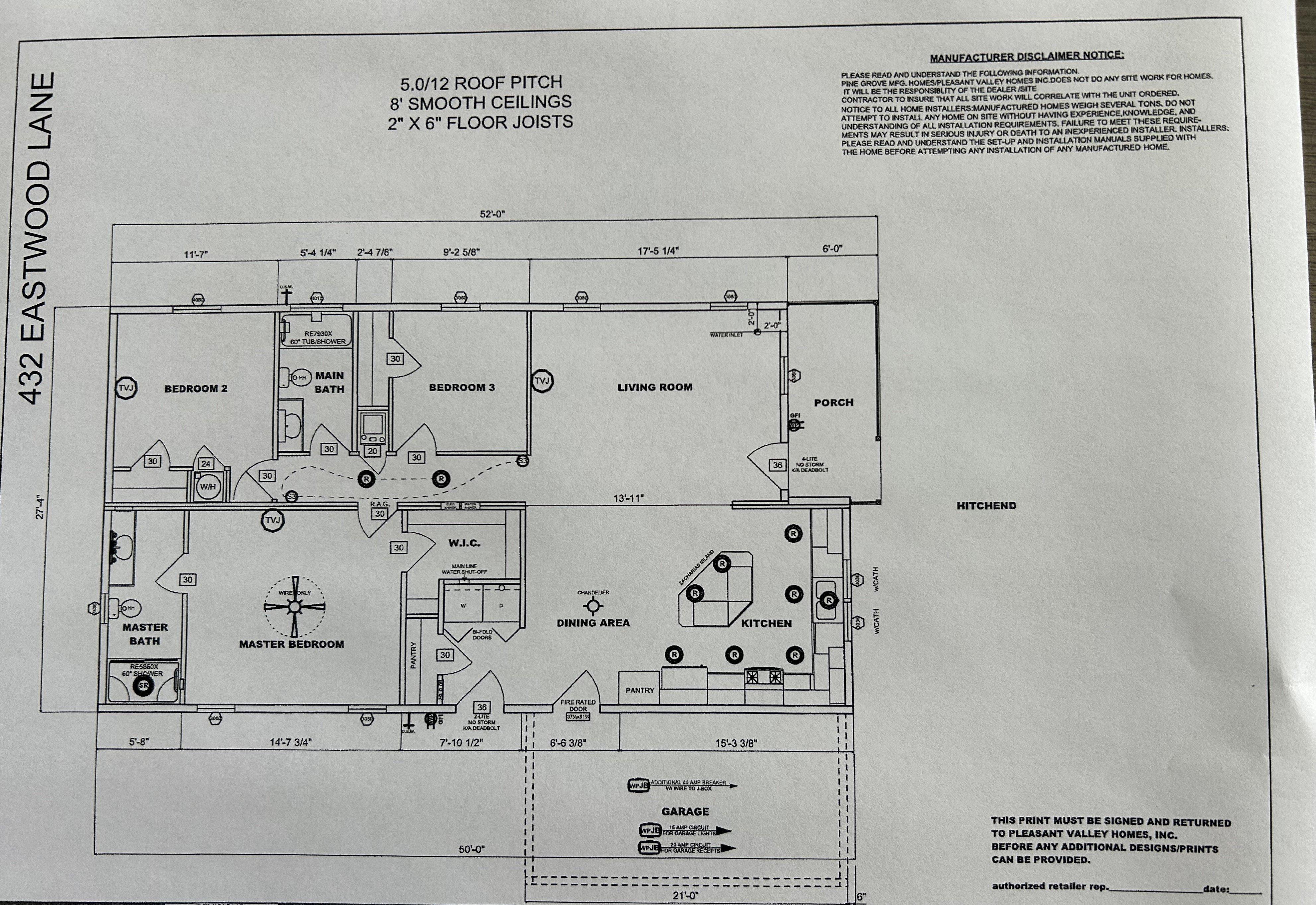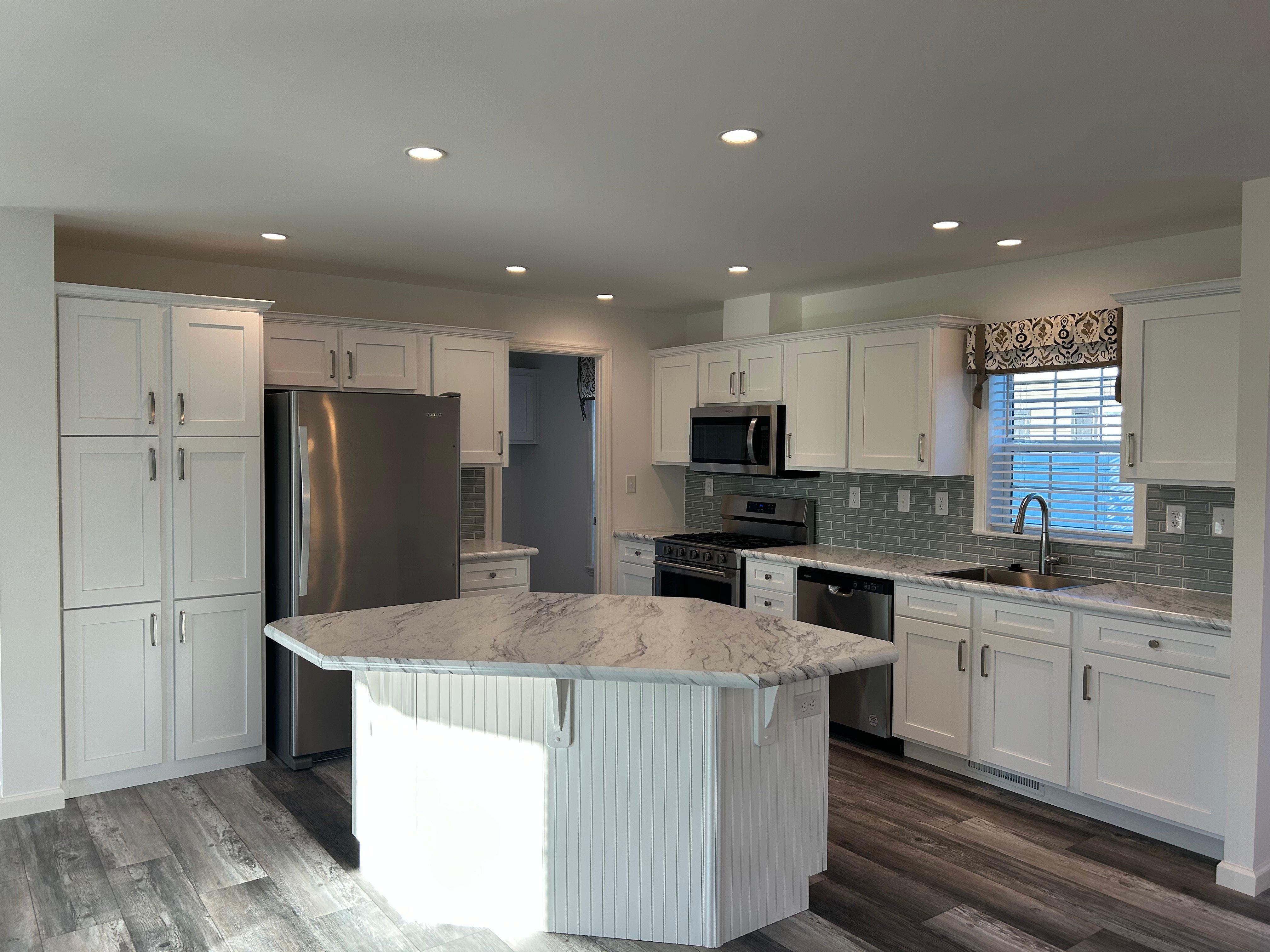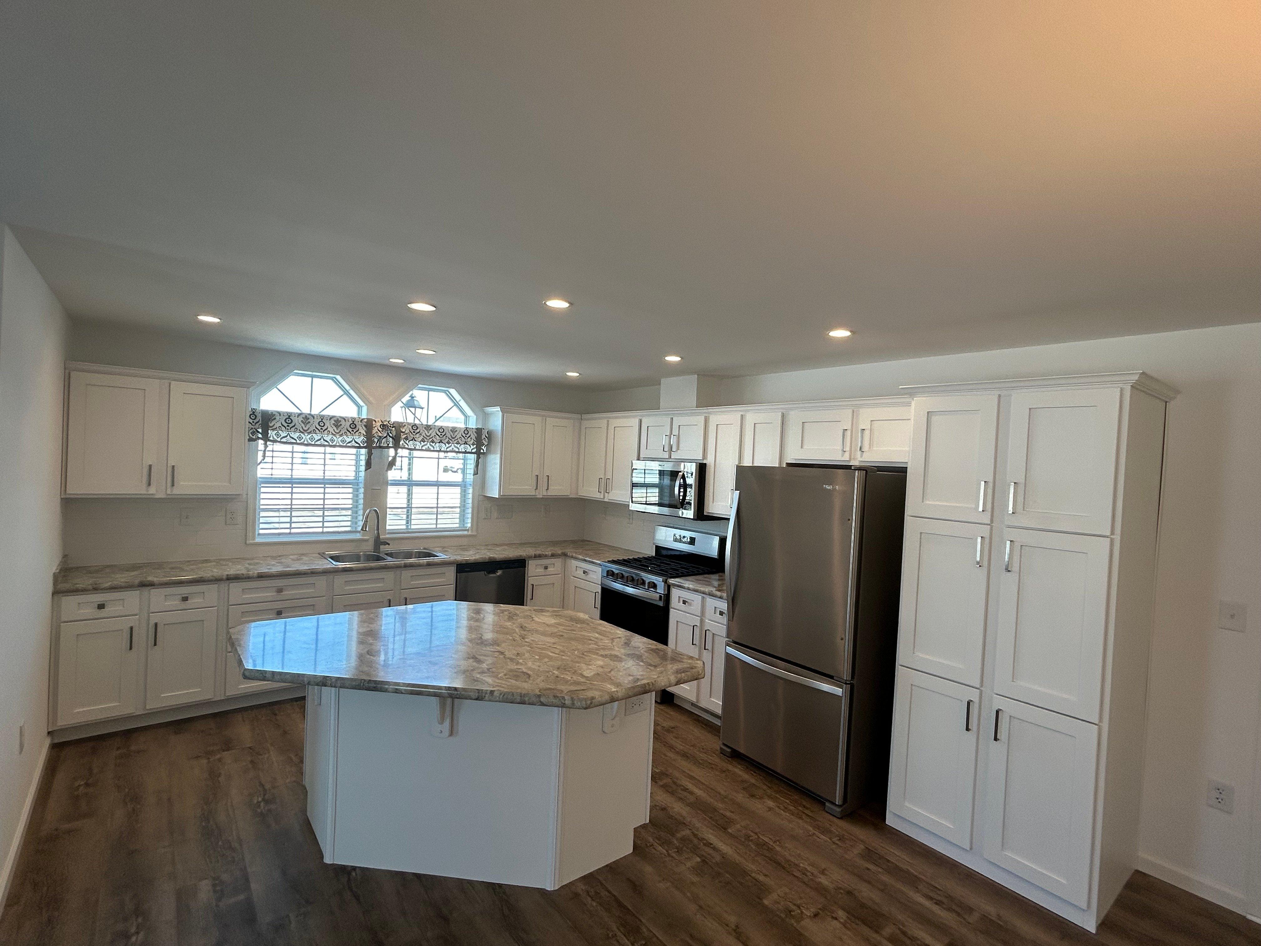 New 2023 Paradise Model Energy Star Certified Pine Grove is a 3BR/2BTH homes. Features Family and Living room. Walk up to an 8' x 12' covered porch with composite decking. Enter into Living room with column walls that connect to Dining area and kitchen. Large Family room is open to the Kitchen. There are plentiful cabinets and triangle shaped island with cabinets and drawers. Natural wood cabinets throughout home. Appliances include are a Dutch door refrigerator with freezer on bottom and water/ice in the door, self-clean gas range, microwave and dishwasher. All appliances are stainless steel. Primary suite has walk in closet and primary bath features ceramic tile shower with seat, double vanity, and linen closet. Separate laundry room with overhead cabinets above washer/dryer area. Second and third bedrooms with full bath are located at opposite end of home. Enjoy the outdoors on a 10' x 12' patio behind the 13' x 21' garage.