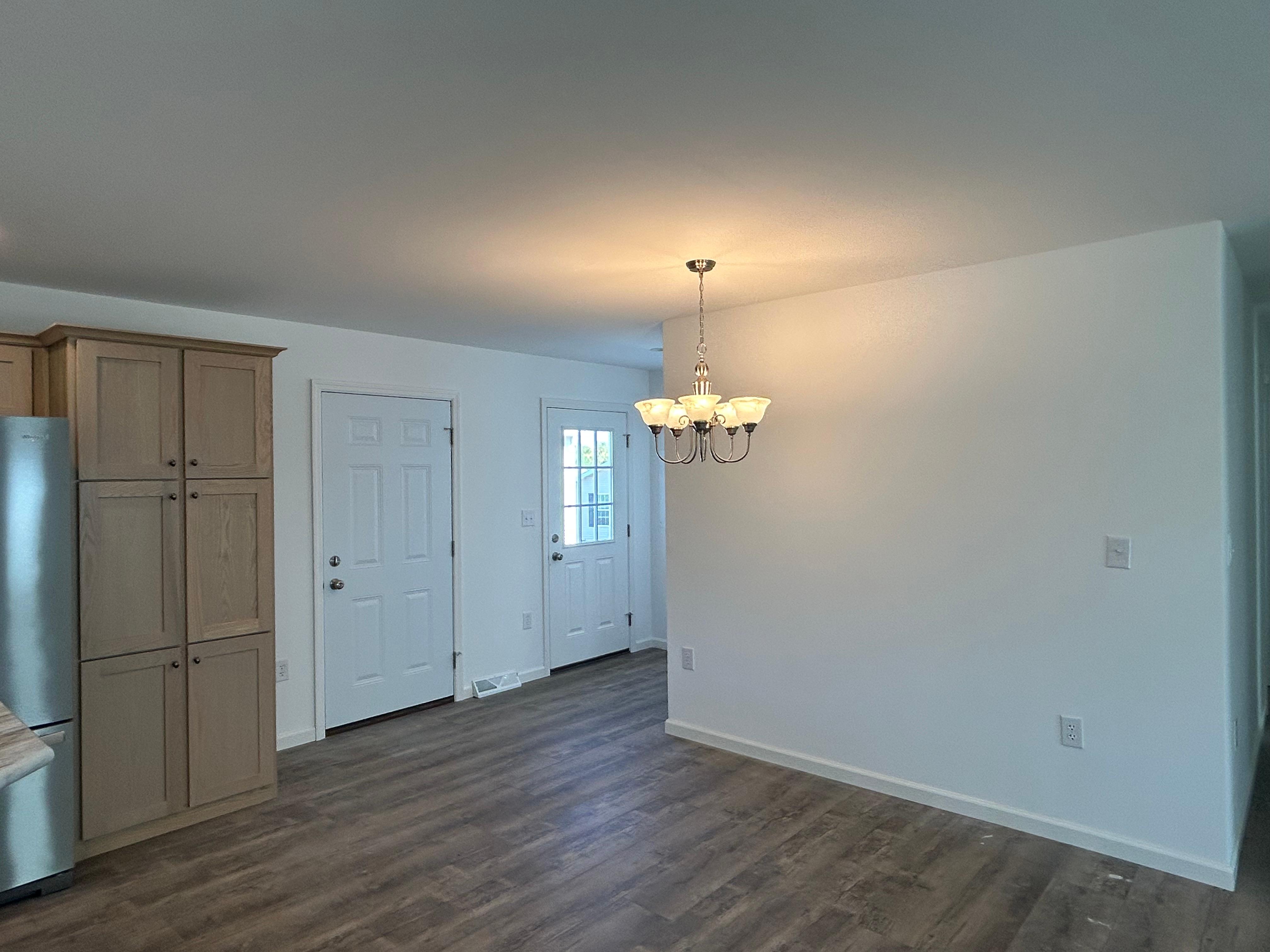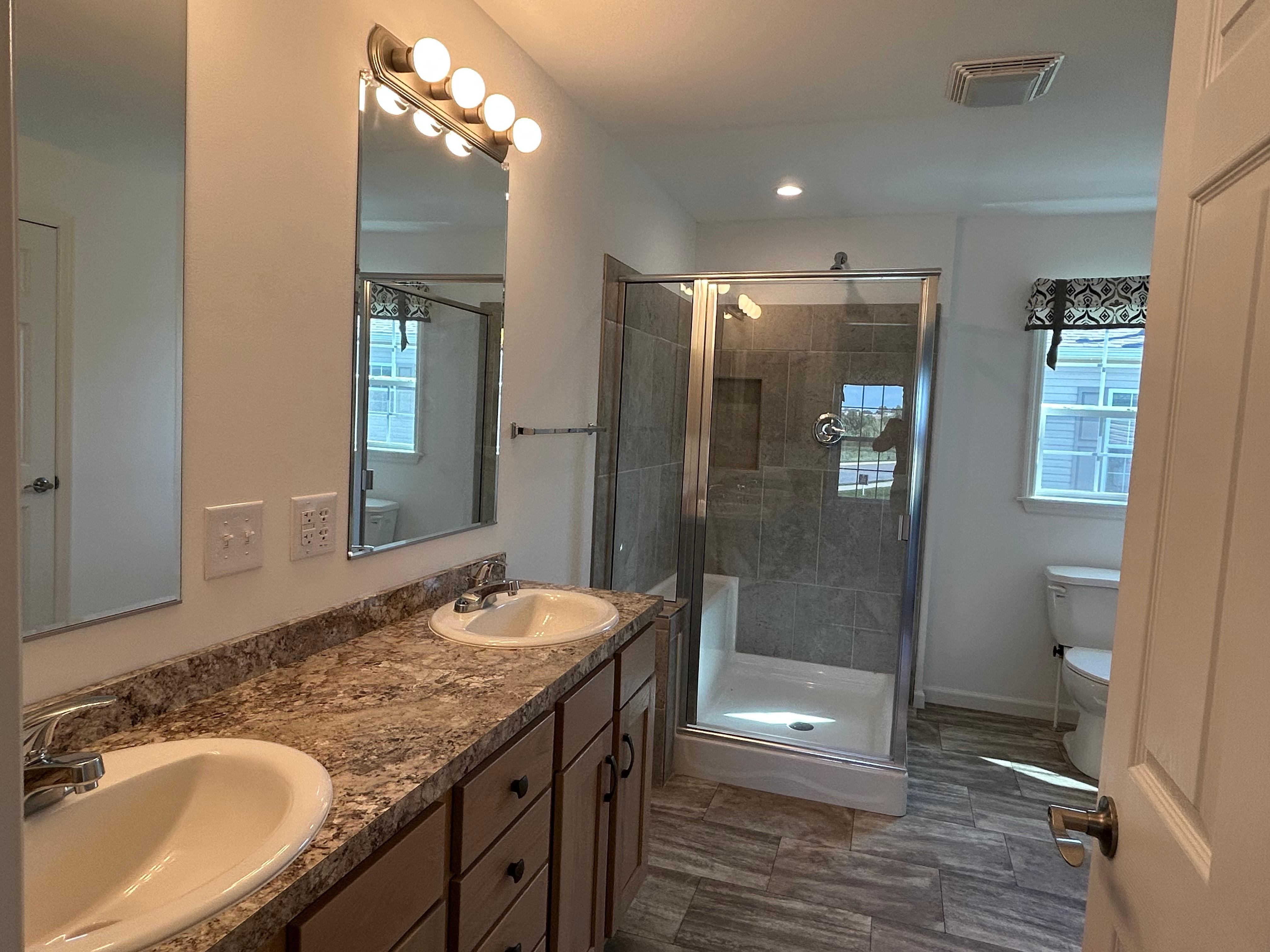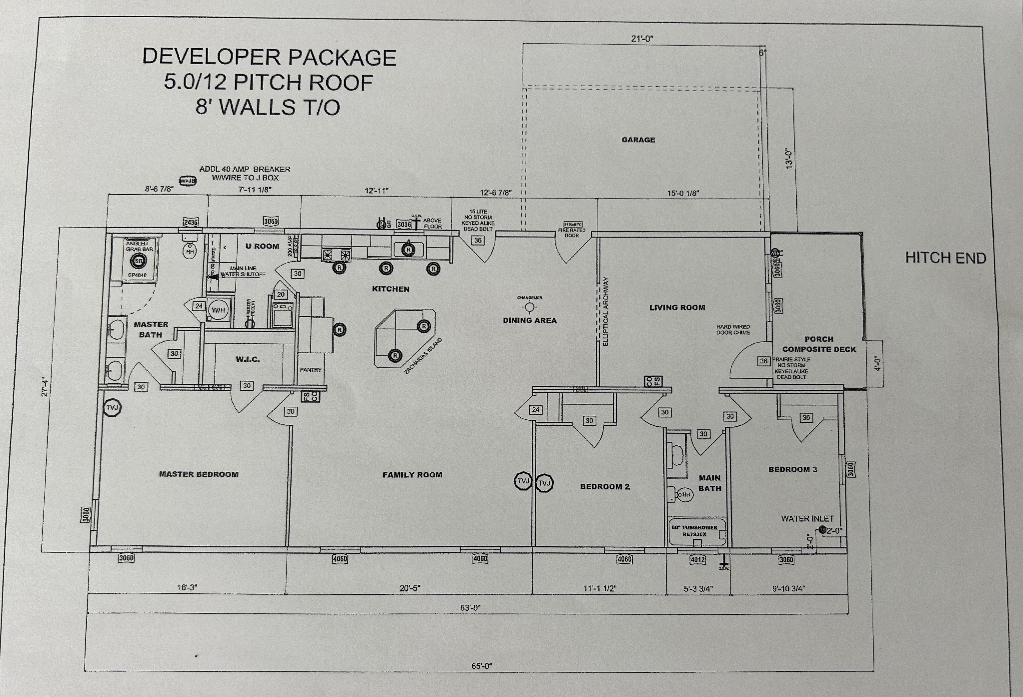 New 2023 Paradise Model Energy Star Certified Pine Grove is a 3BR/2BTH homes. Features Family and Living room. Walk up to an 8' x 12' covered porch with composite decking. Enter into Living room with column walls that connect to Dining area and kitchen. Large Family room is open to the Kitchen. There are plentiful cabinets and triangle shaped island with cabinets and drawers. Natural wood cabinets throughout home. Appliances include are a Dutch door refrigerator with freezer on bottom and water/ice in the door, self-clean gas range, microwave and dishwasher. All appliances are stainless steel. Primary suite has walk in closet and primary bath features ceramic tile shower with seat, double vanity, and linen closet. Separate laundry room with overhead cabinets above washer/dryer area. Second and third bedrooms with full bath are located at opposite end of home. Enjoy the outdoors on a 10' x 12' patio behind the 13' x 21' garage.