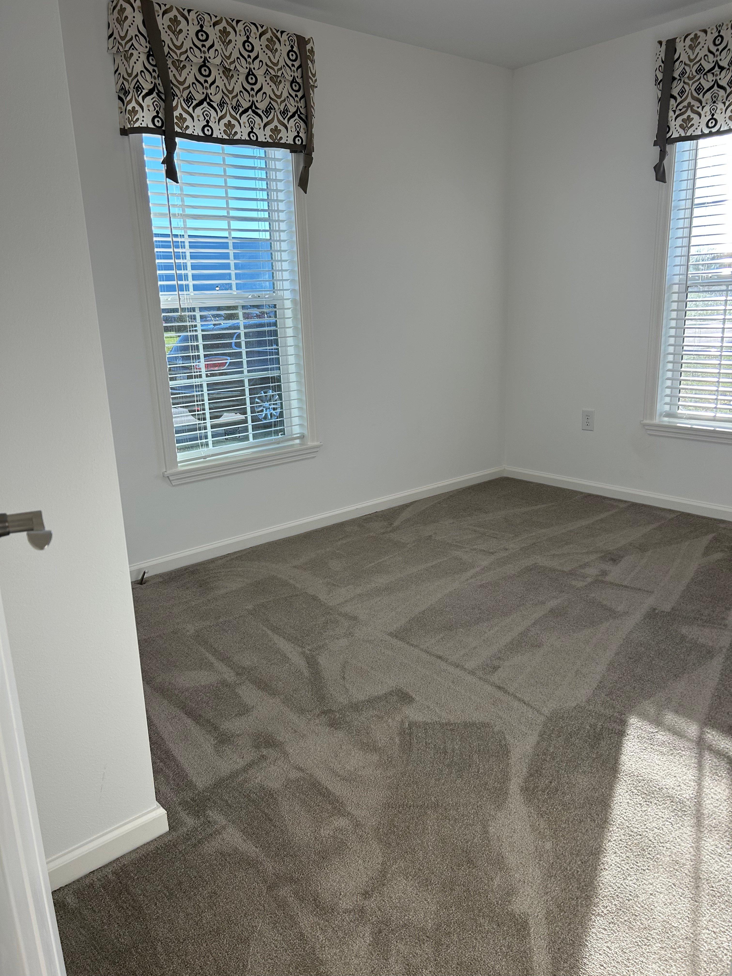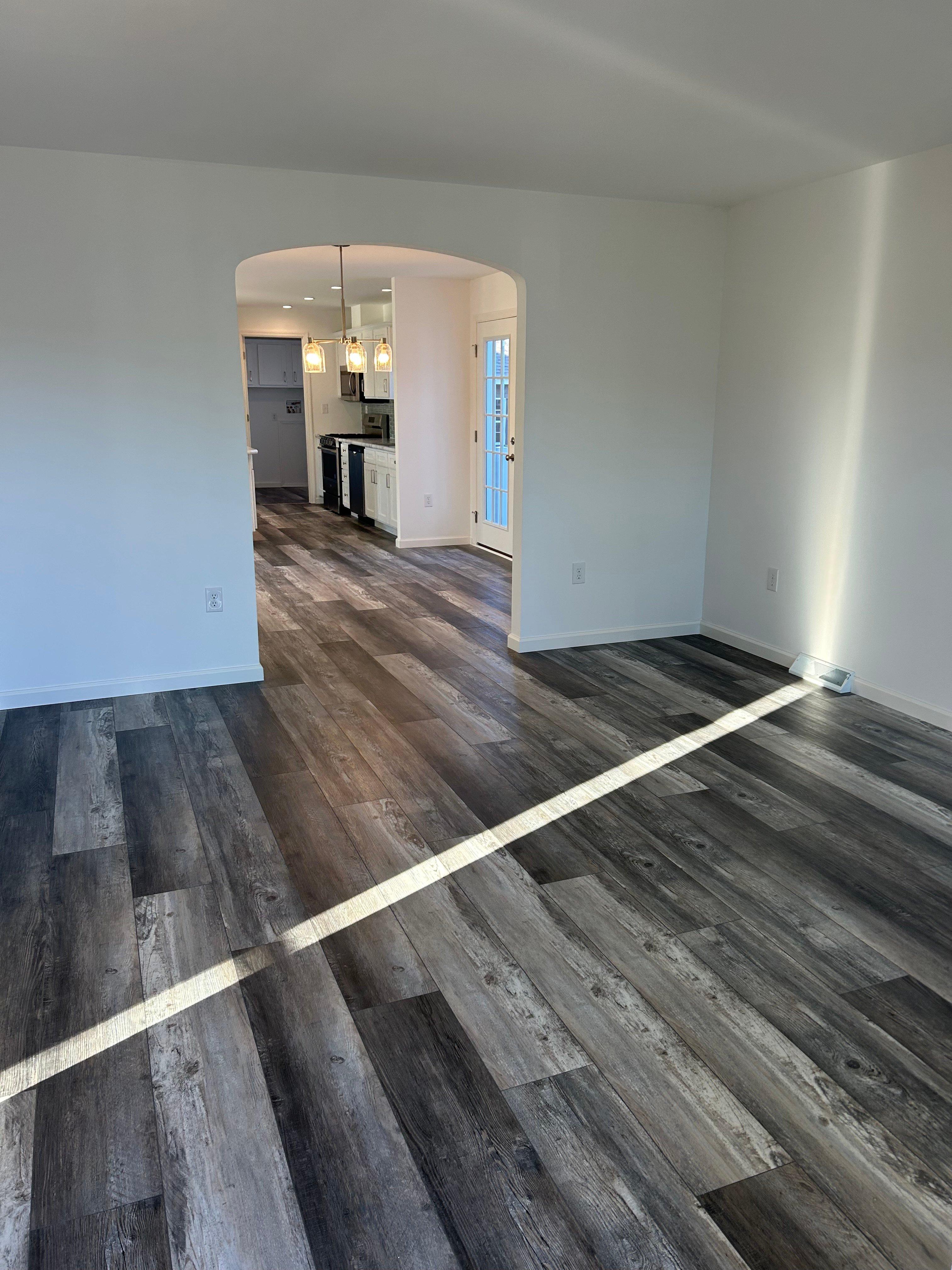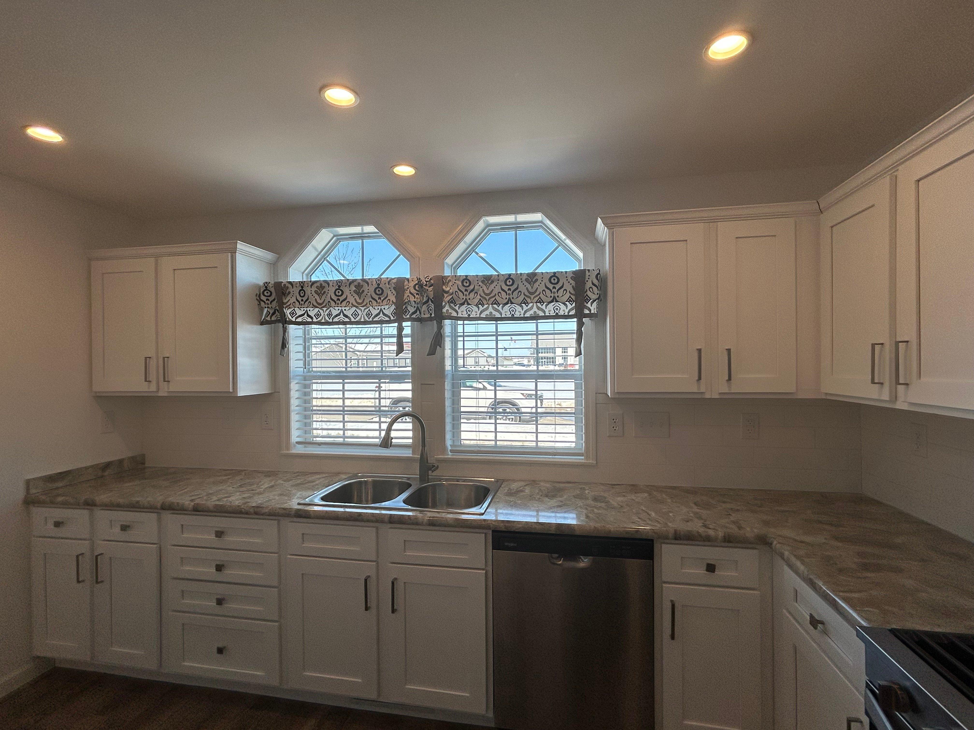 New 2025 3BR/2BTH duplex home. Great Open Floor plan. Primary suite at the back of the home located off large family room. Walk up to covered 8' x 12' front porch with composite decking. Enter the home into the Living room. Bedrooms 2 and 3 with full bath in between is located at the front of the home adjacent to Living room. From Living room walk to the Open area of the Dining, Kitchen and Family room. Kitchen has counter height triangular island with seating available and cabinets for storage. Stainless steel appliances included are bottom mount freezer with ice maker, gas range, dishwasher and microwave. Plentiful white cabinets with pantry beside refrigerator. Vinyl plank flooring throughout all common areas. Bedrooms have carpeting. Laundry/utility access from the kitchen with cabinets above washer/dryer area and additional upright storage space. There's a 10' x 12' concrete patio with access from garage and dining area. Privacy fencing is installed between the homes.