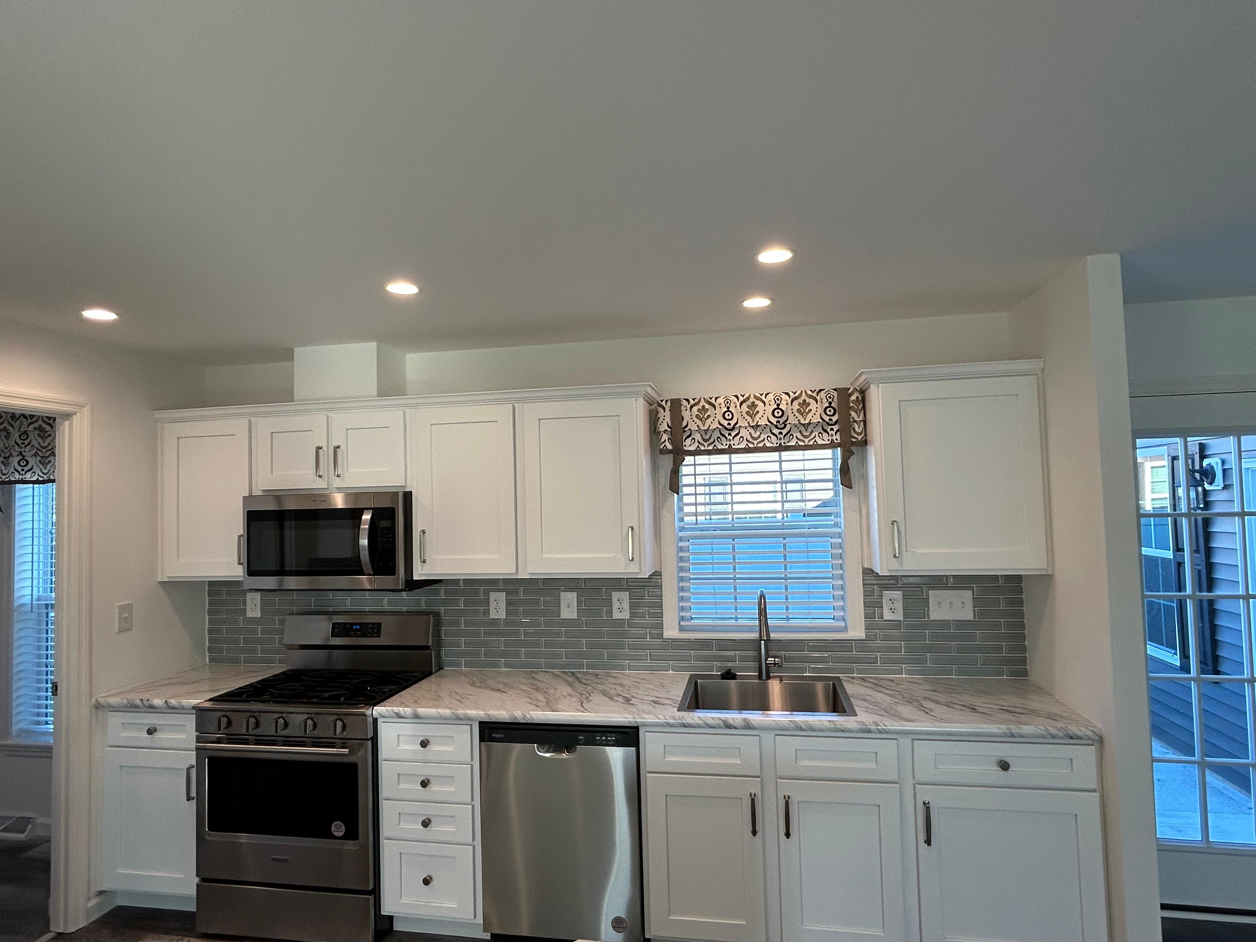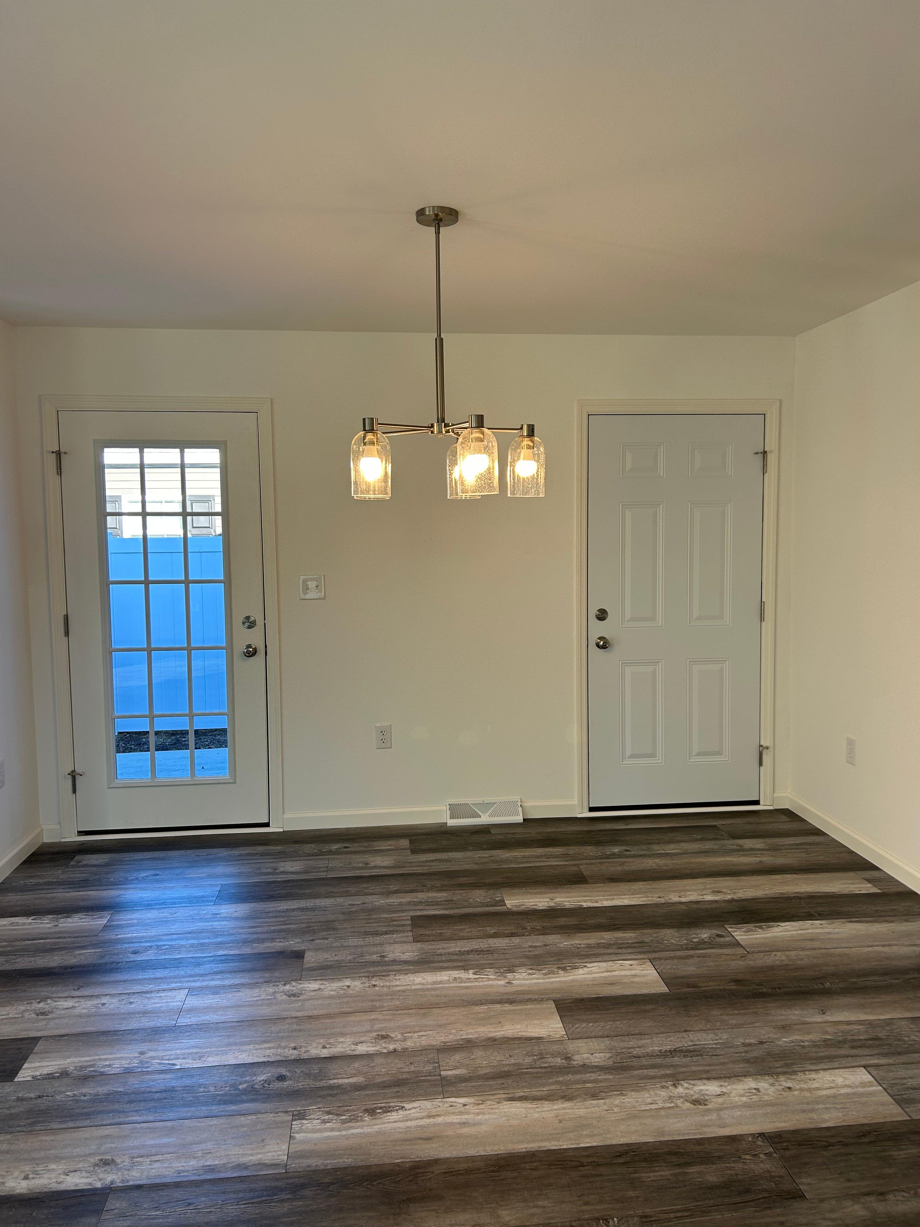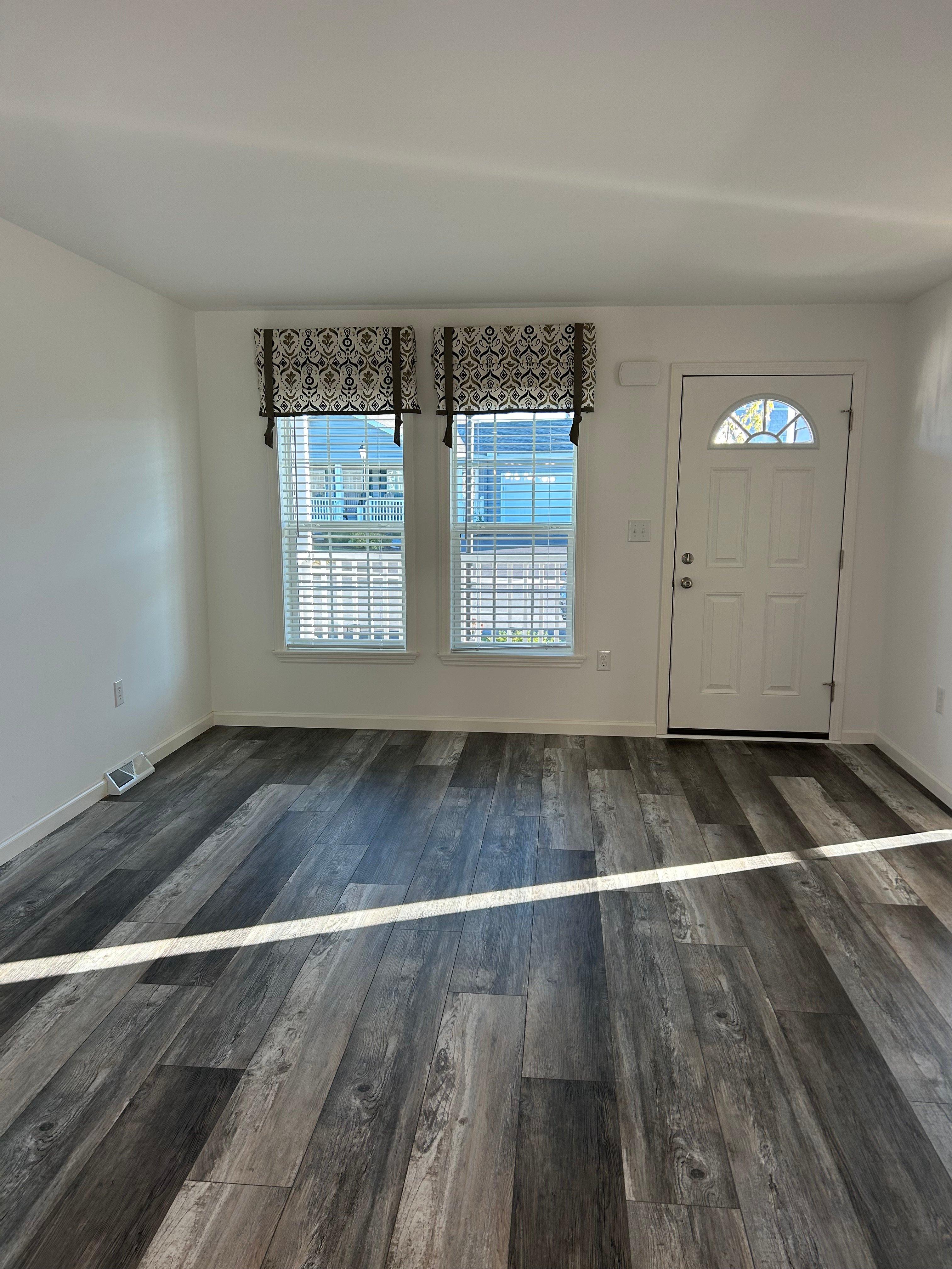 New 2025 3BR/2BTH duplex home. Great Open Floor plan. Primary suite at the back of the home located off large family room. Walk up to covered 8' x 12' front porch with composite decking. Enter the home into the Living room. Bedrooms 2 and 3 with full bath in between is located at the front of the home adjacent to Living room. From Living room walk to the Open area of the Dining, Kitchen and Family room. Kitchen has counter height triangular island with seating available and cabinets for storage. Stainless steel appliances included are bottom mount freezer with ice maker, gas range, dishwasher and microwave. Plentiful white cabinets with pantry beside refrigerator. Vinyl plank flooring throughout all common areas. Bedrooms have carpeting. Laundry/utility access from the kitchen with cabinets above washer/dryer area and additional upright storage space. There's a 10' x 12' concrete patio with access from garage and dining area. Privacy fencing is installed between the homes.